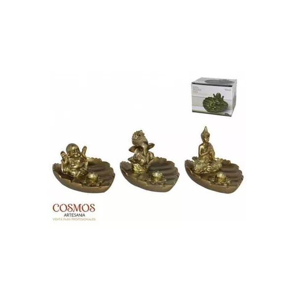 BRUCIA INCENSO GANESH IN RESINA SU FOGLIA-- 11CMBrucia incenso ganesh in resina - colore oro